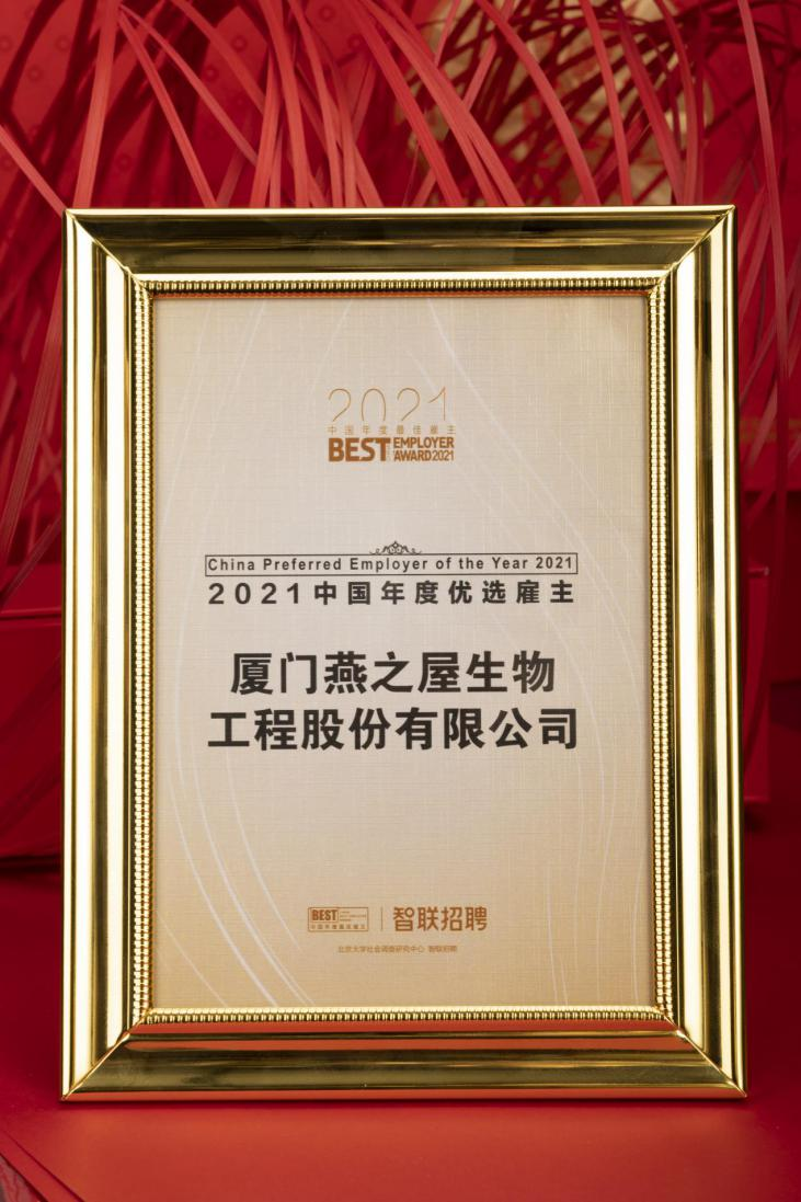 圖:燕之屋榮獲廈門“2021中國年度優(yōu)選雇主”稱號