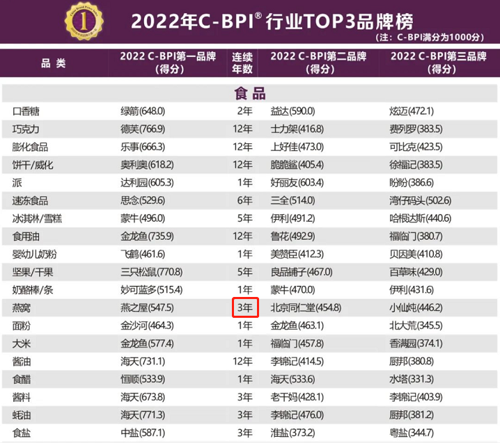 第三次榮膺桂冠!燕之屋問鼎中國品牌力指數(shù)燕窩品類榜首