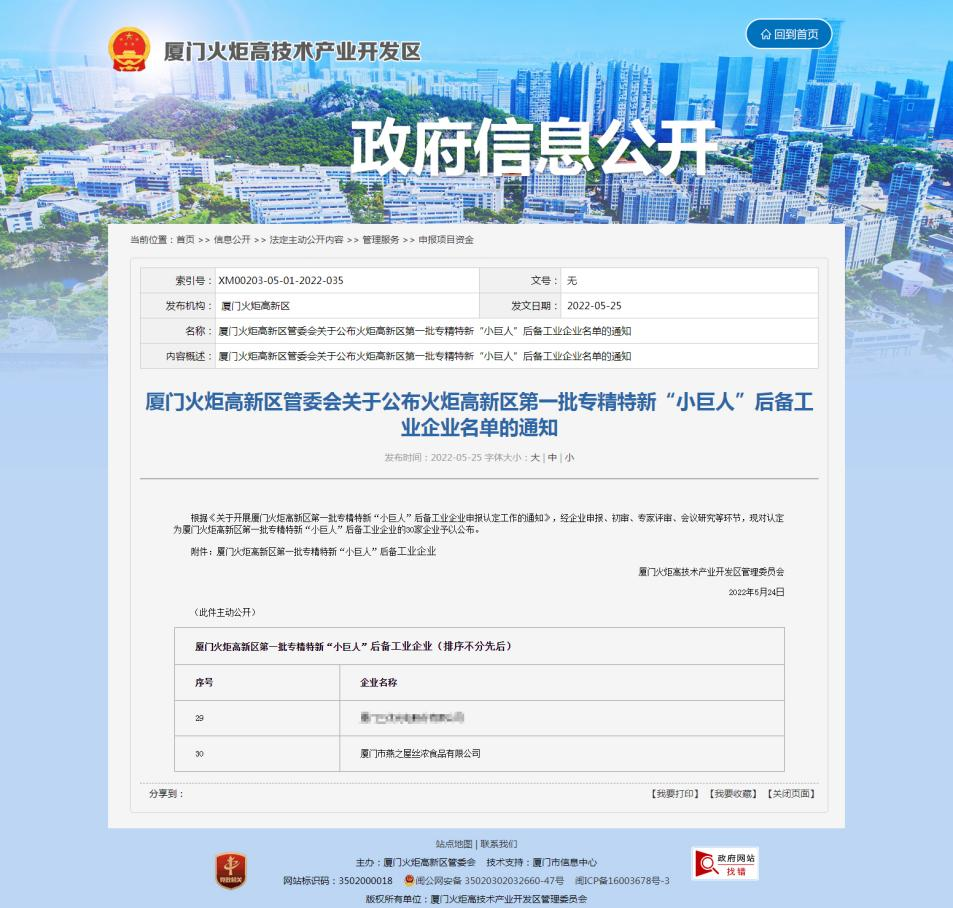 近日,廈門火炬高新區(qū)第一批專精特新“小巨人”后備工業(yè)企業(yè)名單正式對外公布,包括燕之屋在內(nèi)的30家企業(yè)榜上有名。