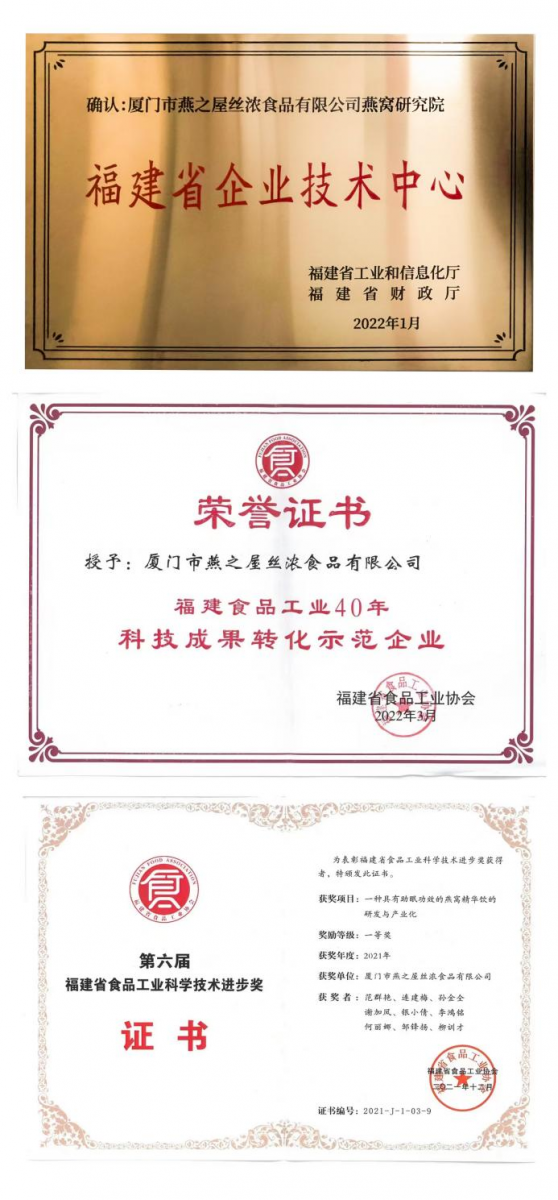 燕之屋獲“福建食品工業(yè)40年科技成果轉(zhuǎn)化示范企業(yè)”等榮譽