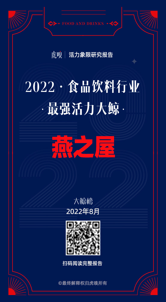近日,虎嗅最新發(fā)布的《2022食品飲料行業(yè)·活力象限研究報(bào)告》中,燕之屋與茅臺(tái)、五糧液、伊利等知名品牌入選“第一象限——最強(qiáng)活力大鯨”。