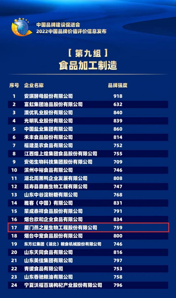 圖:燕之屋成為唯一榮登2022中國品牌價值評價信息發(fā)布榜的燕窩品牌